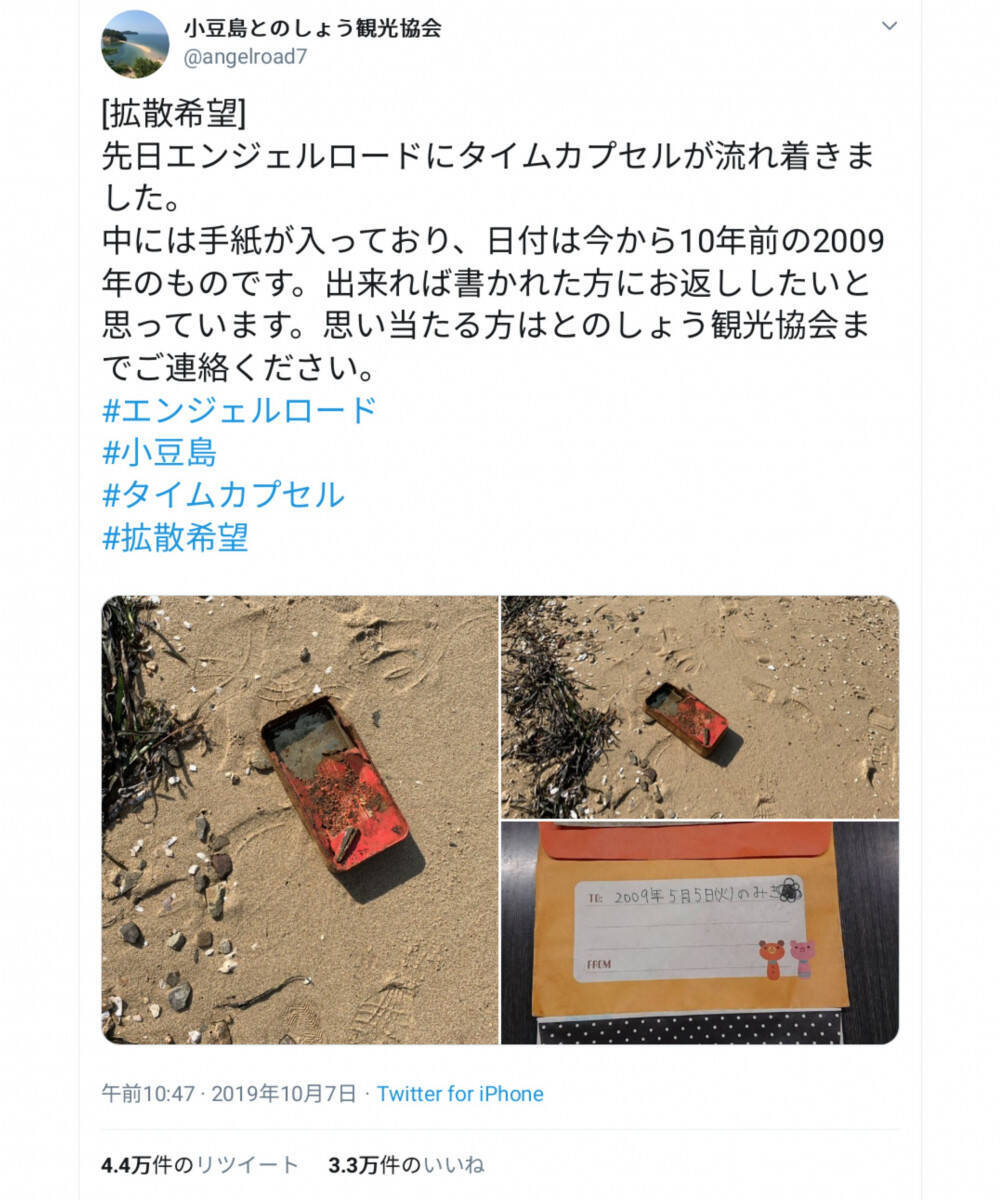 小豆島に突如あらわれた10年前のタイムカプセル 持ち主情報募集中 エキサイトニュース